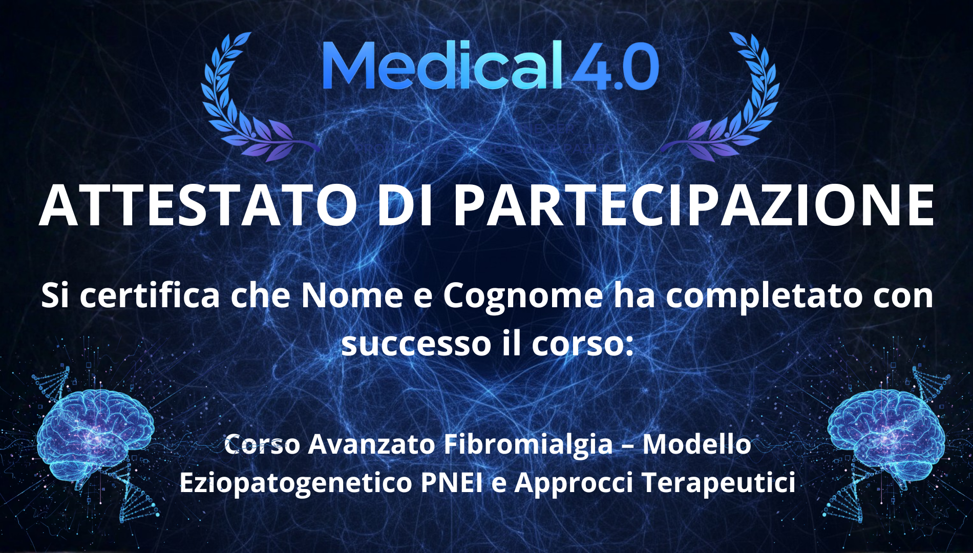 L'aggiornamento professionale è fondamentale e obbligatorio. Partecipando al corso riceverai un attestato di partecipazione che dimostrerà la tua preparazione e competenza riguardo la Fibromialgia. Ti aiuterà ad aumentare la tua credibilità e affidabilità agli occhi dei pazienti che ti sceglieranno.